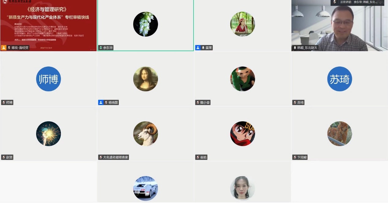 3月26日,《经济与管理研究》“新质生产力与现代化产业体系”专栏第一期审稿快线在线上成功举办。本次活动由首都经济贸易大学杂志总社主办,首都经济贸易大学杂志总社副社长姜莱主持,南京大学师博教授、东北财经大学韩超教授担任点评专家。来自山东大学、四川大学、广东金融学院、新疆大学、天津财经大学、华南理工大学的多位学者分享了最新的研究成果,依次就新质生产力发展的背景下,企业组织、绿色金融、数字化与产业化、公共数据开放等方面的问题进行了探讨。与会专家听取了5篇论文的汇报,对论文进行了深入点评。专家主要从指标测度、机制逻辑、实证方法等方面提出了宝贵的建设性意见,包括如何更好地构建新质生产力指标测度体系、如何更准确地厘清新质生产力与企业具体实践之间的传导链条,以及如何更细致地处理政策混杂效应等;同时,多次强调了在研究过程中需要注意的问题,如确保研究的创新性、严谨性与现实意义,以及数据的准确性等。这些意见直指每项研究的核心,旨在帮助作者补强逻辑、夯实证据、突出亮点,将前沿的学术思考锤炼为经得起推敲的学术成果。